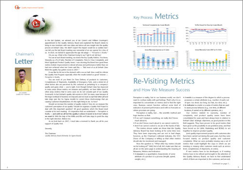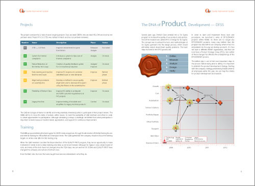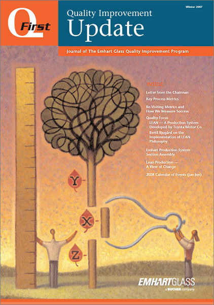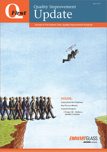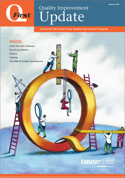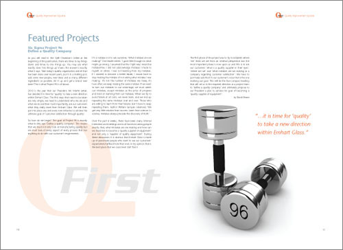A global leader in glass container manufacturing machinery and systems was utilizing Six Sigma to help improve the quality of its customer service relations. The company wanted to develop an effective publication piece to provide employees with continual updates regarding its Six Sigma progress, challenges, and successes. Because it would be a regularly occurring piece with a consistent format, we focused on a design that supported the company’s brand standards while connecting with a global employee base. Q First supports the goals and values of Six Sigma and gives the company a rallying piece to build a positive corporate culture of success around.