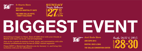 - Creative: Mestek AHR Hospitality Suite Invitation