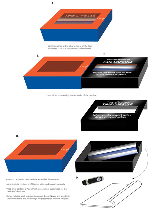 This regional leader in mechanical piping systems for commercial applications was looking for an effective way to announce the opening of a second location that allowed it to provide services to a larger market area. Rather than a flat postcard, we developed a 3-dimensional solution that really got the audiences’ attention. The time capsule consisted of an actual piece of product, with a flash drive and case studies about the company’s projects contained inside. The messaging reminded recipients that there is no way to know when a piping system will need repair, but Notch has the expertise (and now the expanded capacity) to provide solutions wherever and whenever that moment arrives.