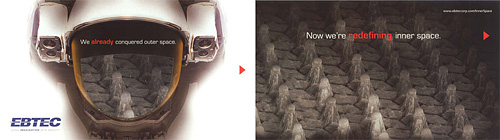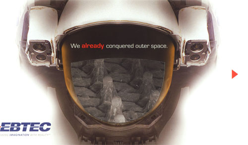 A global leader in high-energy-beam fabrication wanted to grow its medical device manufacturing business by promoting its new, proprietary technology. LSHD chose to leverage the company’s rich history in a dynamic mailer that prompted recipients to consider the possibilities. The headline “We’ve already conquered outer space.” supports the company’s aerospace success and sets up the payoff, “Now we’re redefining inner space.” on the inner sleeve. With the reflection on the helmet revealed to be microscopic texturing created by the technology, the mailer conveys EBTEC’s innovative capabilities while supporting its brand message of “Fusing Imagination with Reality.”