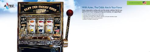 This leader in HVAC technologies had realized it was sitting on a golden opportunity. Its Aztec Evaporative Cooling Unit was the perfect solution for server facilities, as it could help IT professionals achieve the industry’s standards for energy consumption and room temperature. However, its newness to this particular market meant the company needed to build credibility with the target audience, and the Data Center World Convention in Las Vegas was an opportunity to make a solid impression. Focusing on Aztec’s better than 99% reliability, and leveraging a little Vegas nostalgia, our execution resonated with the convention crowd, positioning Aztec as a “sure thing” for reliable performance.