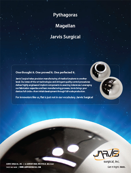 This proven leader in medical implant manufacturing wanted to convey to the market just how exacting its fabrication services are. Experts in such precision work as hand polishing femoral heads to exacting tolerances, the company needed an ad that was as awe-inspiring as the medical devices it produces. Focusing on this difficult manufacturing challenge, LSHD’s execution drew comparisons between the company and two historical figures who understand spheres better than anyone else. The payoff copy defines the role each expert plays in the story (“One thought it. One proved it. One perfected it.”), and how Jarvis Surgical takes fabrication to another level of genius.
